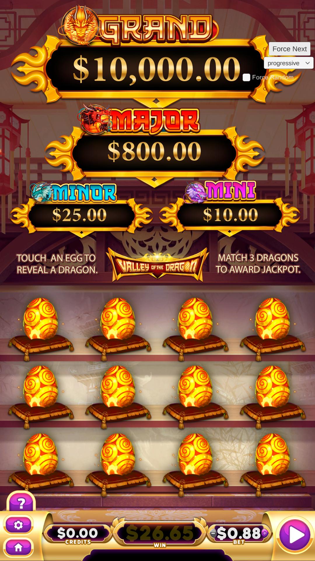 - Dragon Eggs: Each dragon egg grows the jackpot egg, triggering the jackpot pick-and-match bonus game when it explodes.