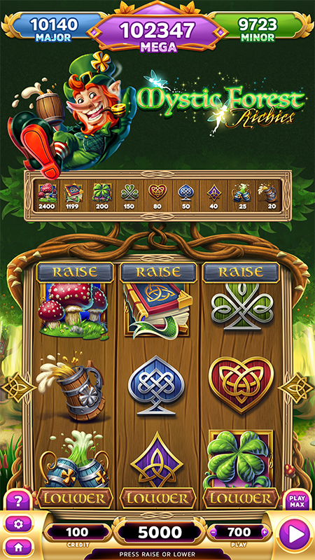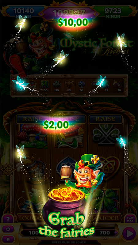 In this Mystic Forest, Pixie the fairy will fly through the board and reveal a number of Free Spins and prizes on the Fairy Mini-Game.