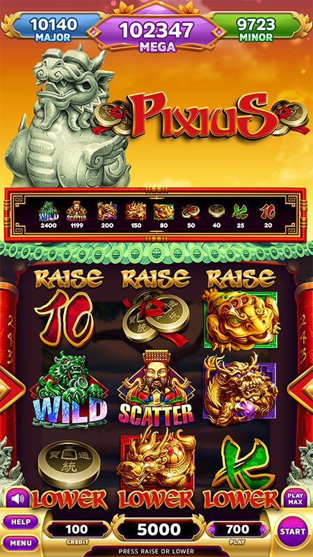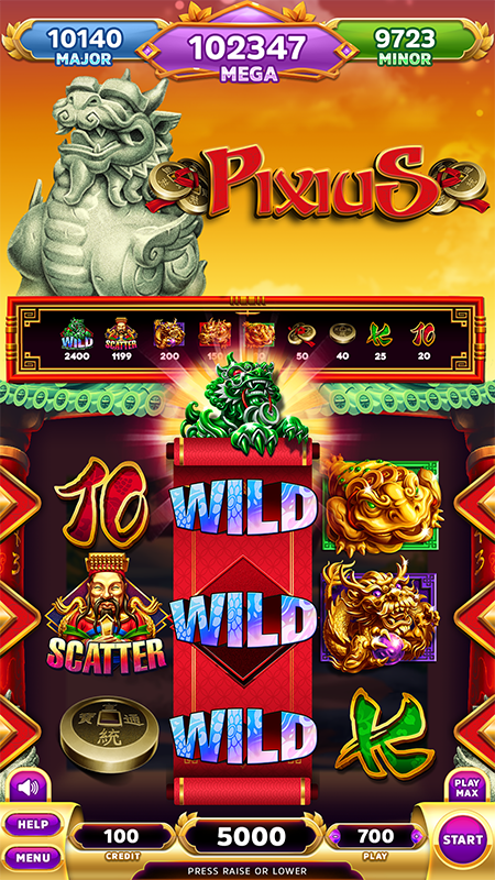 The ancient Pixius will roar to awake random Extended Wilds and Hold and Spin features.