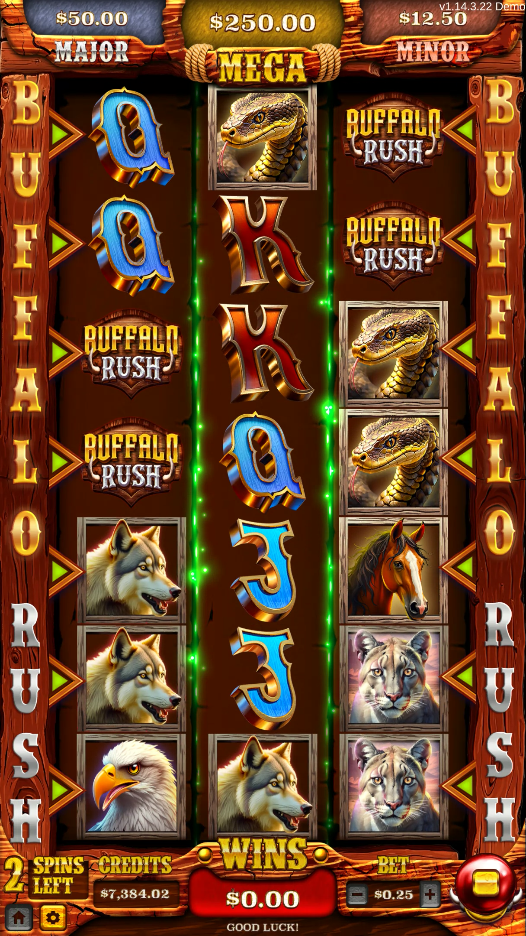 The thrilling Buffalo Rush feature brings cascading spins and powerful upgrades, as stampedes and wildlife lead you to untamed riches with every drop.