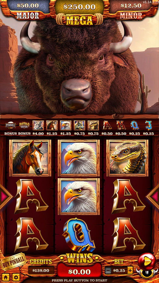 - New Bonus modes: Buffalo Rush, Animal Bonus and Pinball